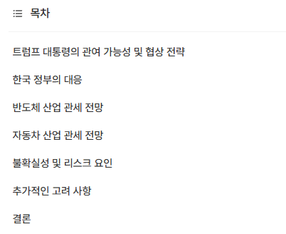 한미 무역 협상의 결과는 한국 경제, 특히 반도체 및 자동차 산업에 큰 영향을 미칠 것으로 예상된다. 한국 정부는 다각적인 협상 전략을 통해 미국의 보호무역주의 압력에 효과적으로 대응하고, 국내 기업의 경쟁력을 유지하기 위한 노력을 기울여야 할 것이다.