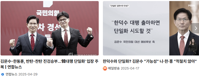 - 한덕수와 조건부 단일화 → 주도권 확보 시 수용 가능성