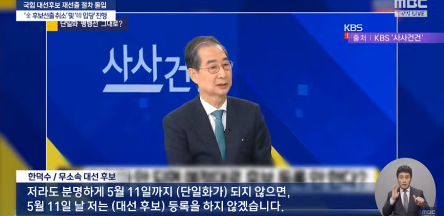 그 결과, 단일화는 결렬되었고 당 지도부는 “차라리 교체”라는 초강수를 택했습니다.