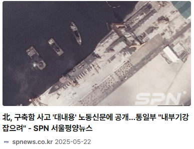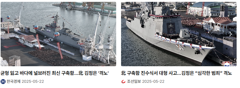 - 2025년 5월, 북한 청진조선소에서 벌어진 5000t급 신형 구축함 진수 사고의 원인과 김정은의 반응,
