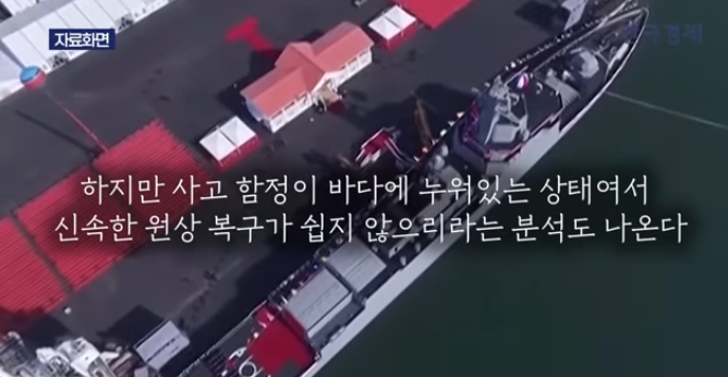 이며, 전도된 함정이 바다에 떠 있는 상태임을 확인했습니다. 또한 미군 및 연합 정보 자산을 통해 파손 부위, 잔해 처리 동향 등을 면밀히 분석하고 있어 후속 복구 과정도 국제 감시망에 노출될 가능성이 큽니다.