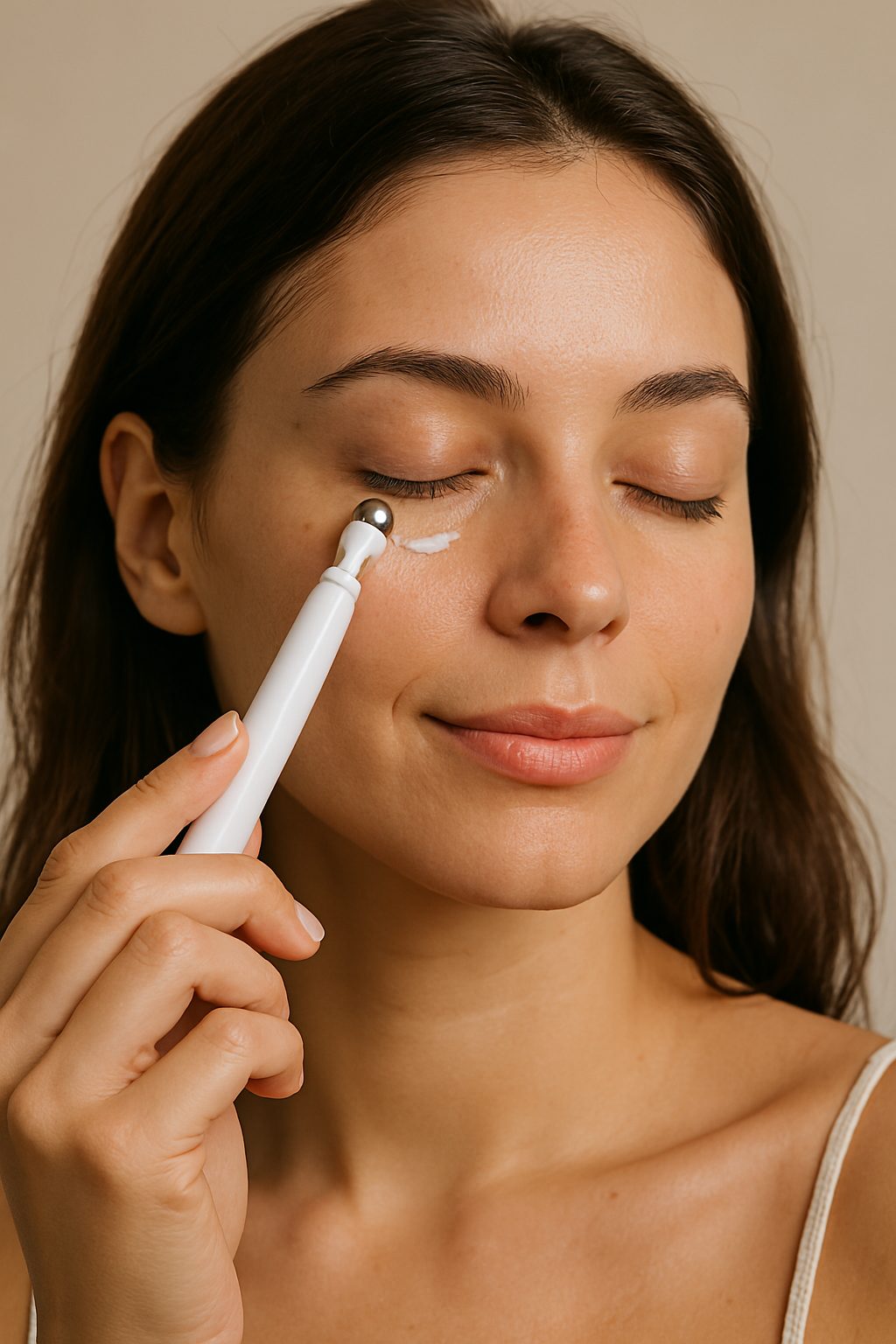 - 냉장 보관한 스테인리스 롤러나 쿨링 아이 마스크를 사용해 눈가 부기를 완화하세요. 이는 림프 순환을 돕고, 처짐을 방지하는 데 효과적입니다. TIP: 롤링은 안쪽에서 바깥쪽 방향으로 3분 정도가 적당합니다.