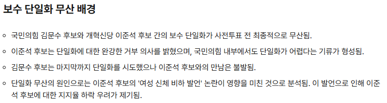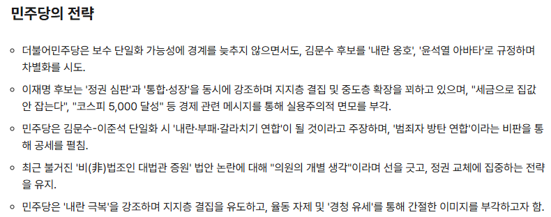 6️⃣ 보수단일화 무산의 파장과 민주당의 전략