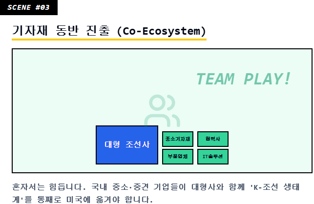 - 기자재 동반 진출: 대형 조선사뿐만 아니라 국내 기자재 중소·중견기업들이 미국 현지 법인을 통해 생태계를 함께 구축해야 합니다.