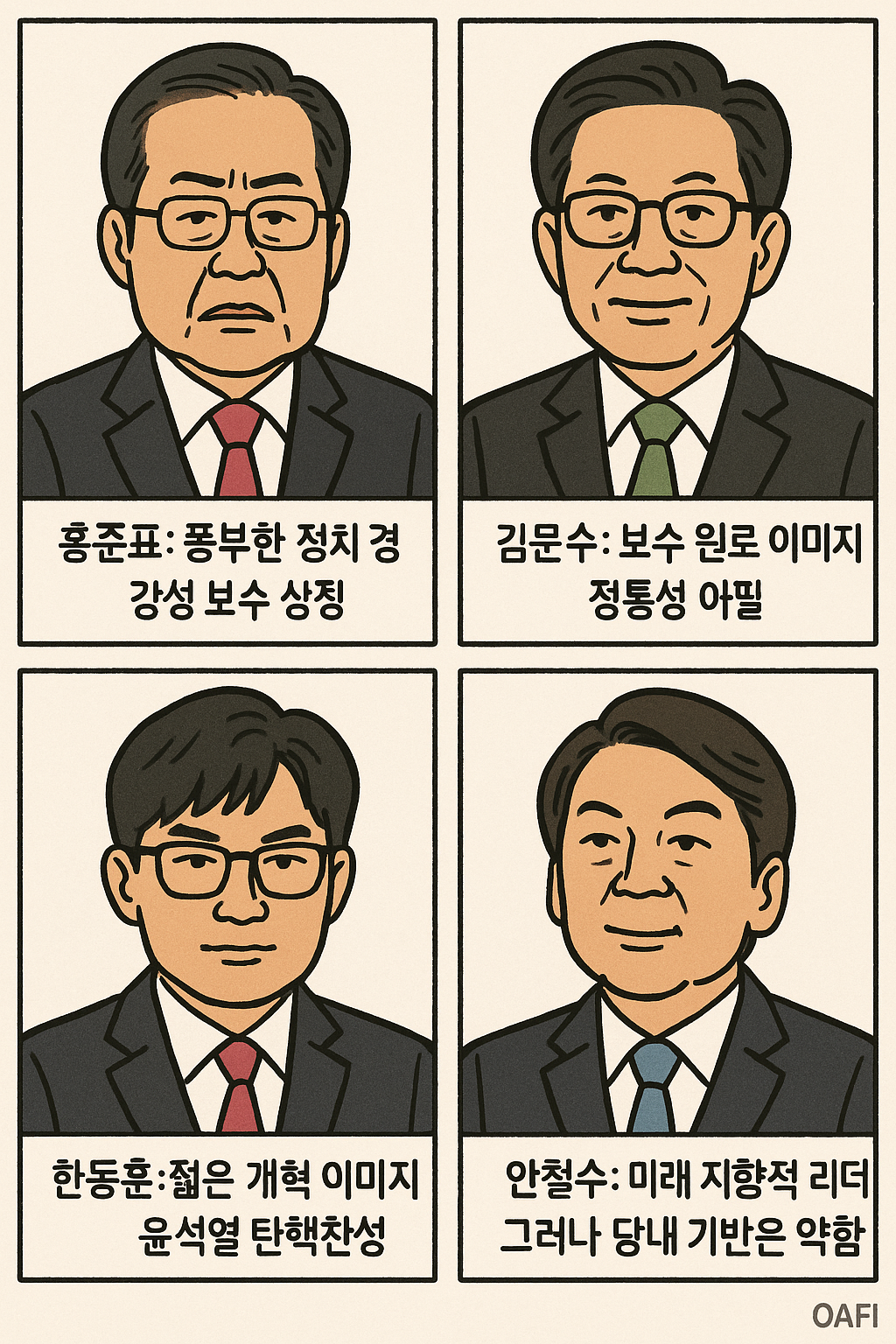 - 홍준표: 풍부한 정치 경험, 강성 보수 상징