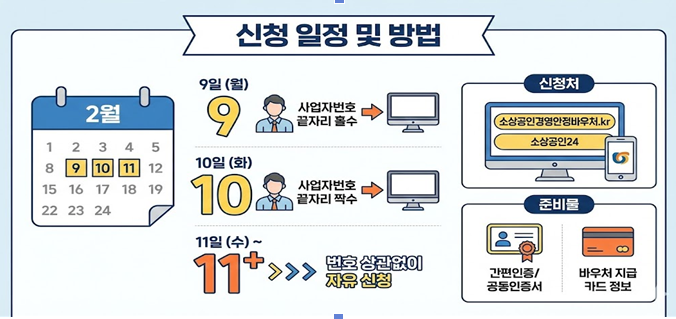 - 2월 10일 (화): 사업자번호 끝자리 짝수 신청