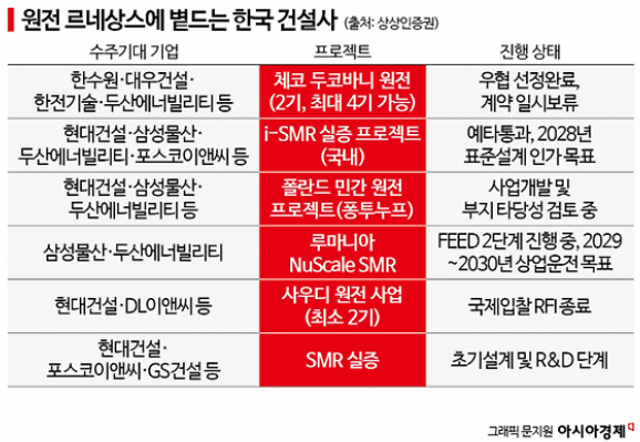 - 삼성물산: 뉴스케일 파워에 지분 투자 후 루마니아 SMR 6기 기본설계(FEED) 수행 중.