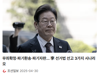 2025.04.30 - [분류 전체보기] - 대법, 이재명 선거법 선고기일 전격 지정…무죄 확정? 파기환송?핵심 쟁점 총정리