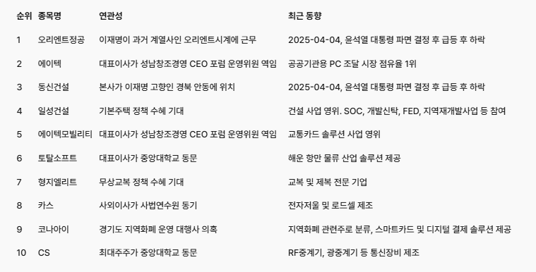 2025.04.05 - [분류 전체보기] - 정치 테마주, 이재명 수혜주 Top5