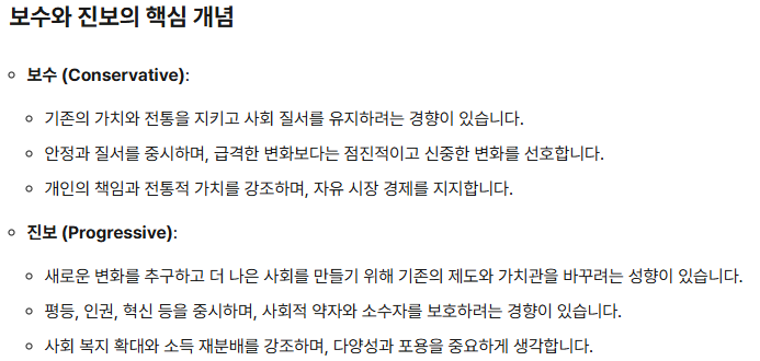 4️⃣ 보수와 진보의 정책과 가치관