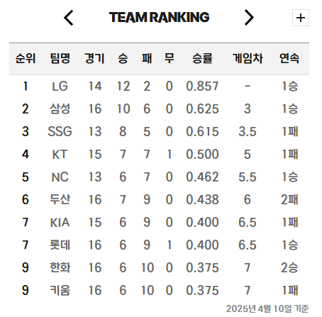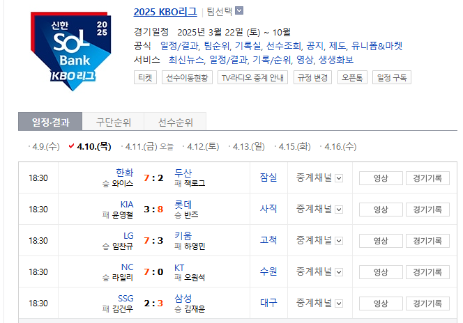 - 선발 와이스 호투: 한화 선발 투수 라이언 와이스는 7⅔이닝 동안 4피안타 2실점으로 호투하며 시즌 첫 승을 기록했다.
