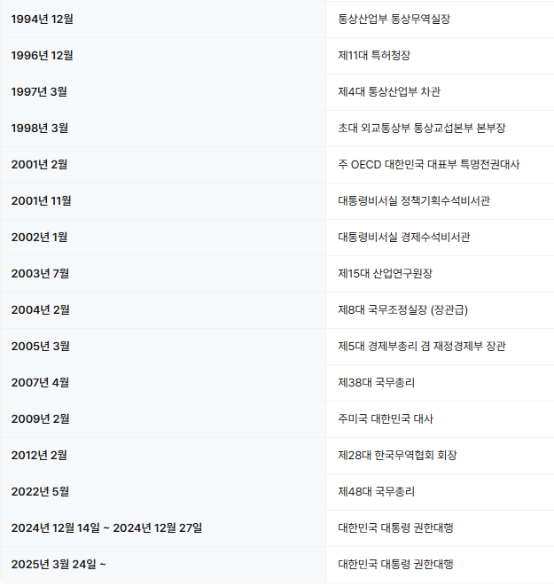 - 이름: 한덕수 (韓悳洙, Han Duck-soo)
