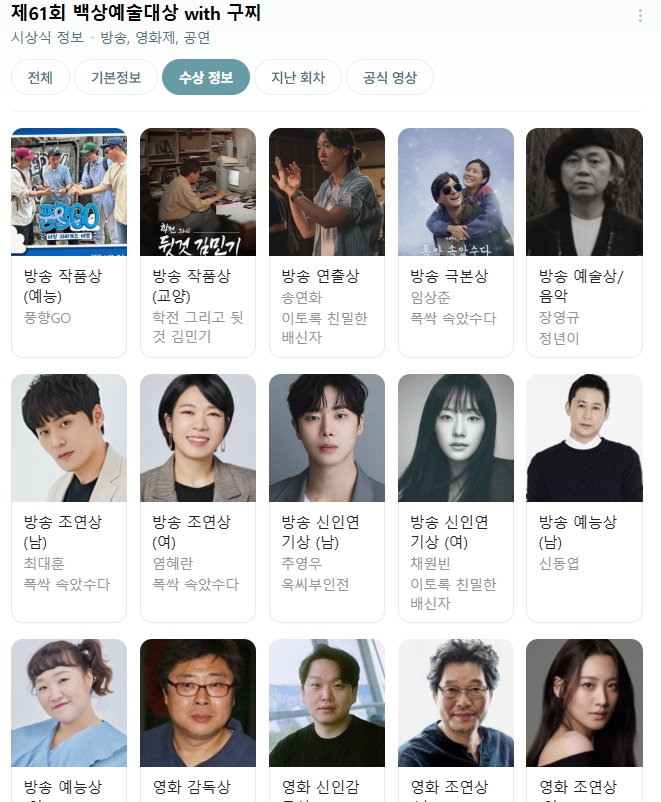 - 2025 백상예술대상 주요 수상자