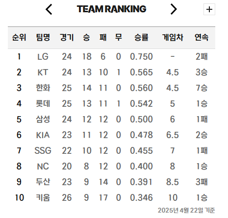 - 치열한 경기력: 시즌 초부터 역전극, 홈런 경쟁 등 박진감 넘치는 명장면이 연출되며 팬들의 관심을 끌었습니다.