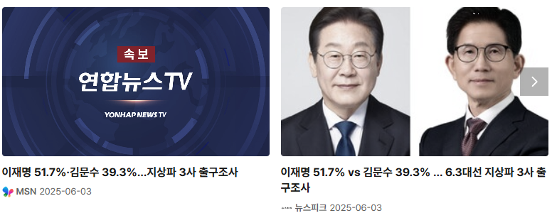 - 서울: 이재명 49.3%, 김문수 40.1%