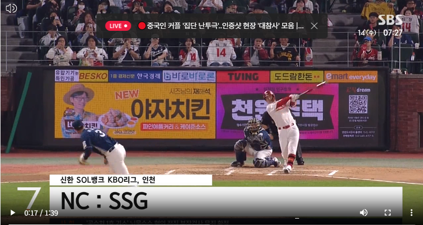 - SSG 팬: 경기장 기립박수, 응원 세례